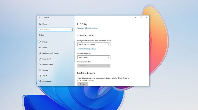 - Click the Detect button to connect to the external monitor under the “Multiple displays” section.